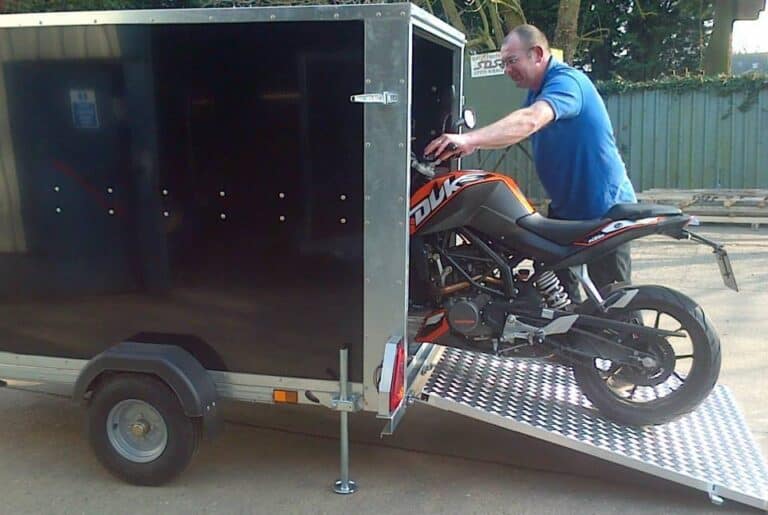 Bike Grab – designed to hold the front wheel of a motorcycle in a trailer.