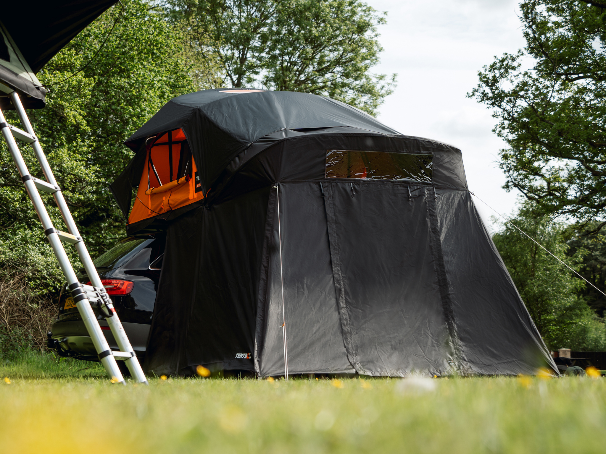 Effortlessly establish a large functional space beneath your Lite XL, ideal for seeking refuge during rainy spells or creating shade on sunny days. Engage ‘wing-mode’ for an expanded sheltered area. Our design incorporates the ladder to seamlessly link your living and sleeping area